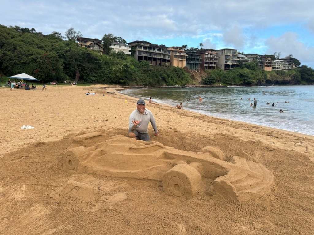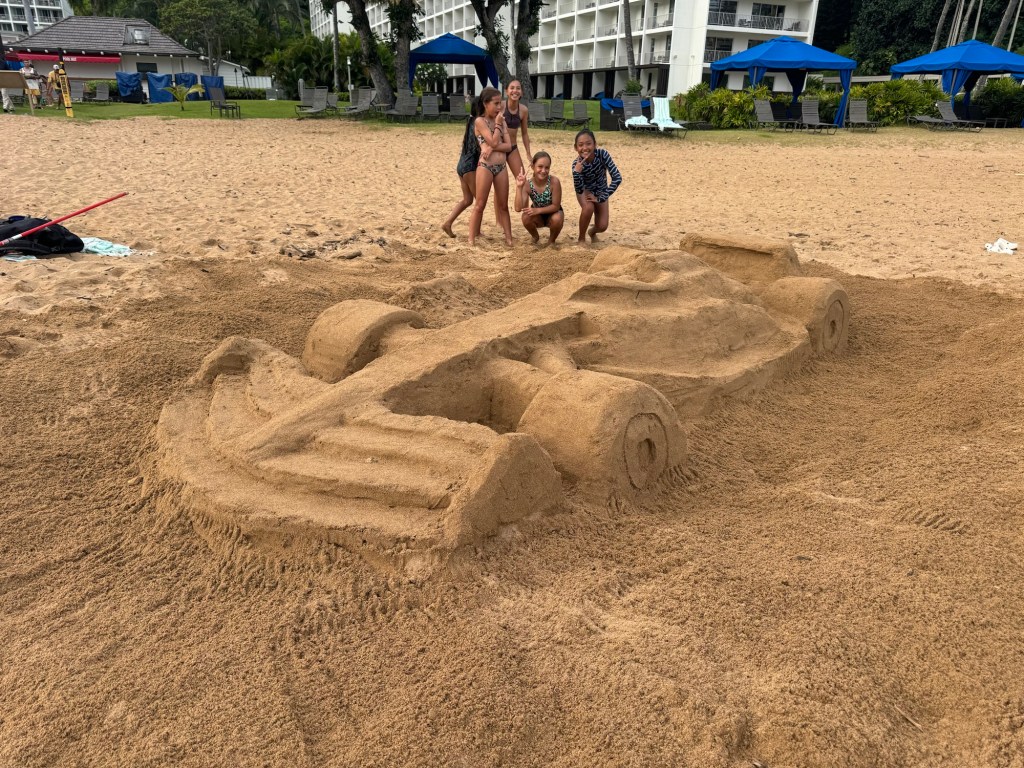 Best part of making sand sculptures is meeting happy beach goers!